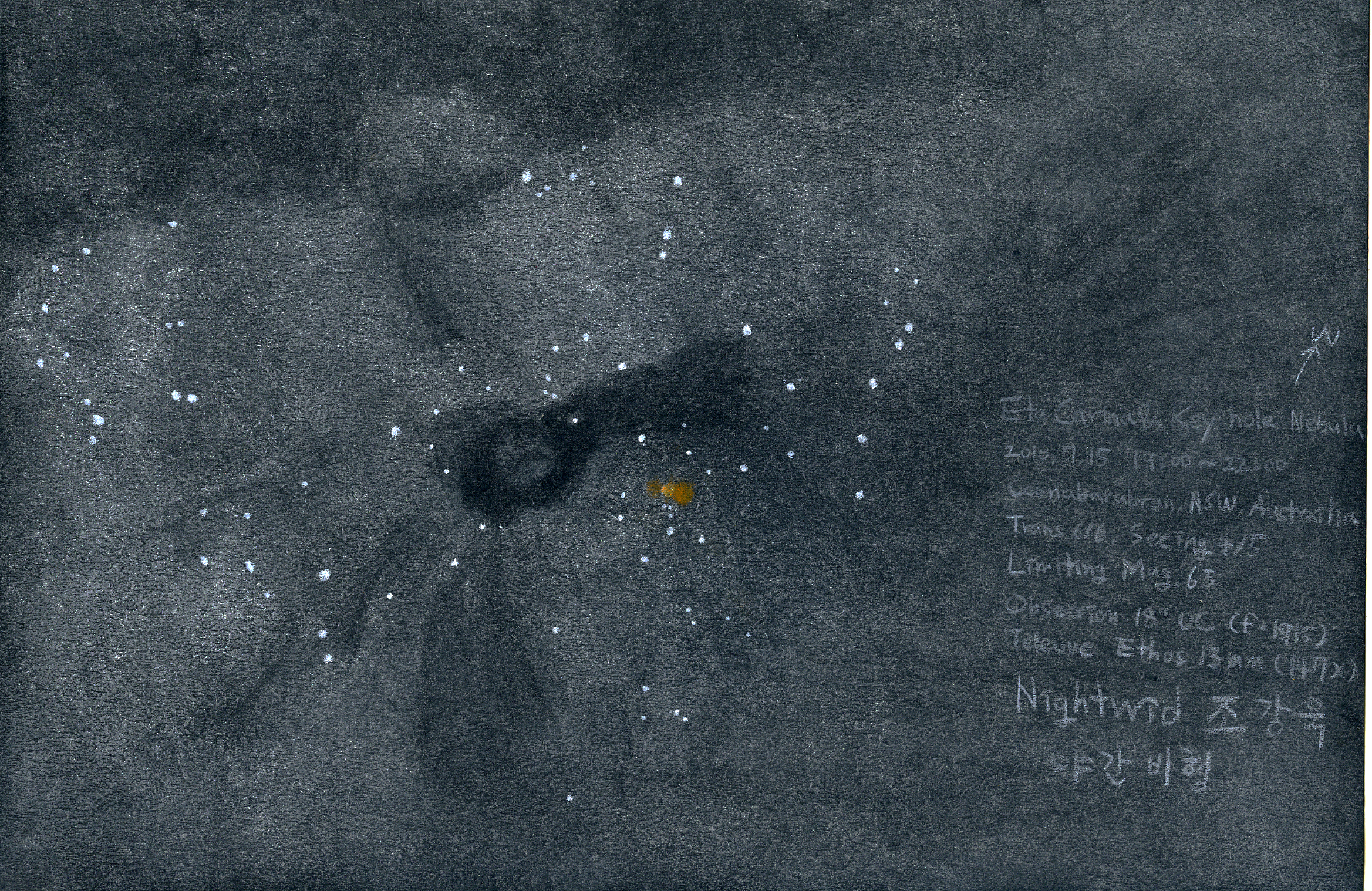 NGC NGC 3372 (Eta Carina & Key Hole Nebula) Date: 15 July 2010Author: Nightwid 0 Comments Media : Black Paper, Pastel Pencils Share this: Click to share on Facebook (Opens in new window) Facebook Like Loading... Related