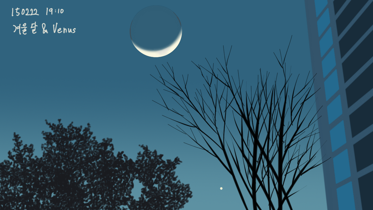 Moon Scenery, Moons of Seoul Day 04 Moon & Venus in the Winter Date: 22 February 2015Author: Nightwid 0 Comments Media : Galaxy Note 4, Stylus Pen Share this: Click to share on Facebook (Opens in new window) Facebook Like Loading... Related