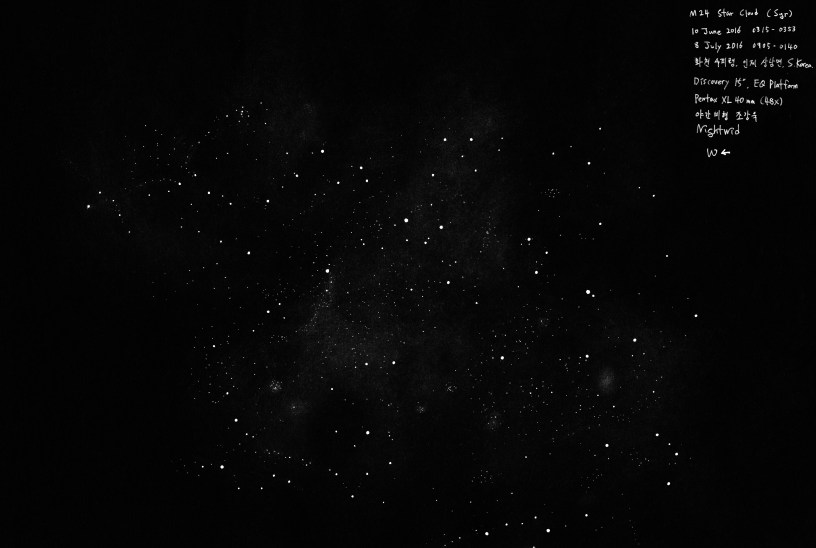 Messier M24 Star Cloud in SGR Date: 16 June 2016Author: Nightwid 0 Comments Messier 24 Star Cloud in Sagittarius – Astro Sketch Media : Black Paper, White Gel Pen, Pastel Pencil Share this: Click to share on Facebook (Opens in new window) Facebook Like Loading... Related