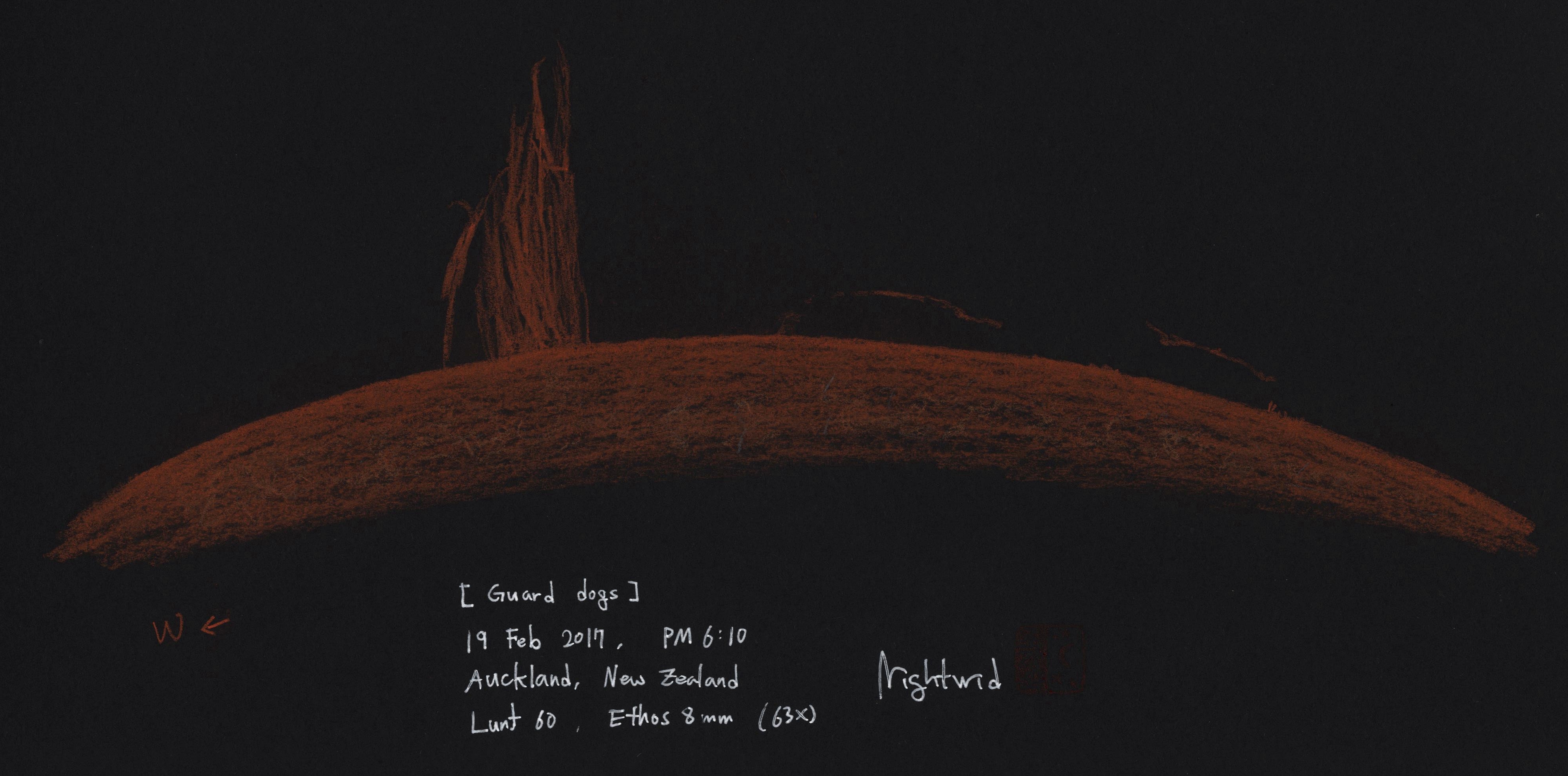 Sun Guard Dogs Date: 19 February 2017Author: Nightwid 0 Comments Media: Black Paper, Pastel Pencil Solar prominence Astro Sketching by Digital drawing Share this: Click to share on Facebook (Opens in new window) Facebook Like Loading... Related
