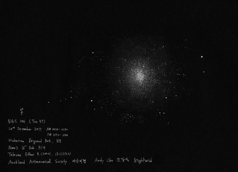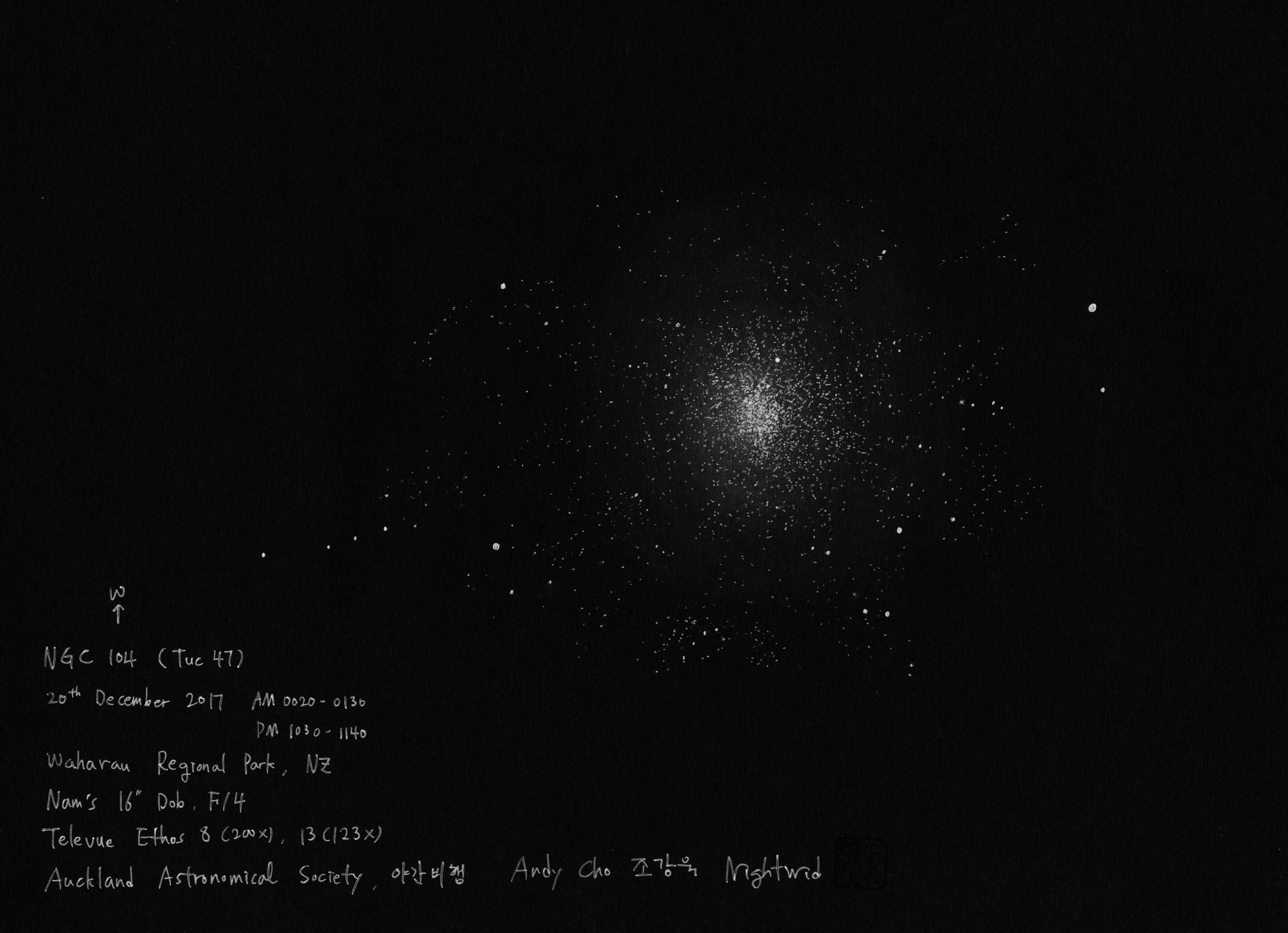 NGC NGC 104 (Tucana 47) Date: 20 December 2017Author: Nightwid 0 Comments Media : Black Paper, White Gel Pen, Pastel Pencil Share this: Click to share on Facebook (Opens in new window) Facebook Like Loading... Related