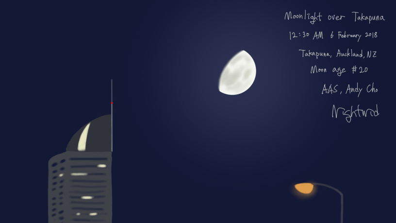 Moon Scenery Moonlight over Takapuna Date: 6 February 2018Author: Nightwid 0 Comments Media : Galaxy Note 4, Stylus Pen Share this: Click to share on Facebook (Opens in new window) Facebook Like Loading... Related