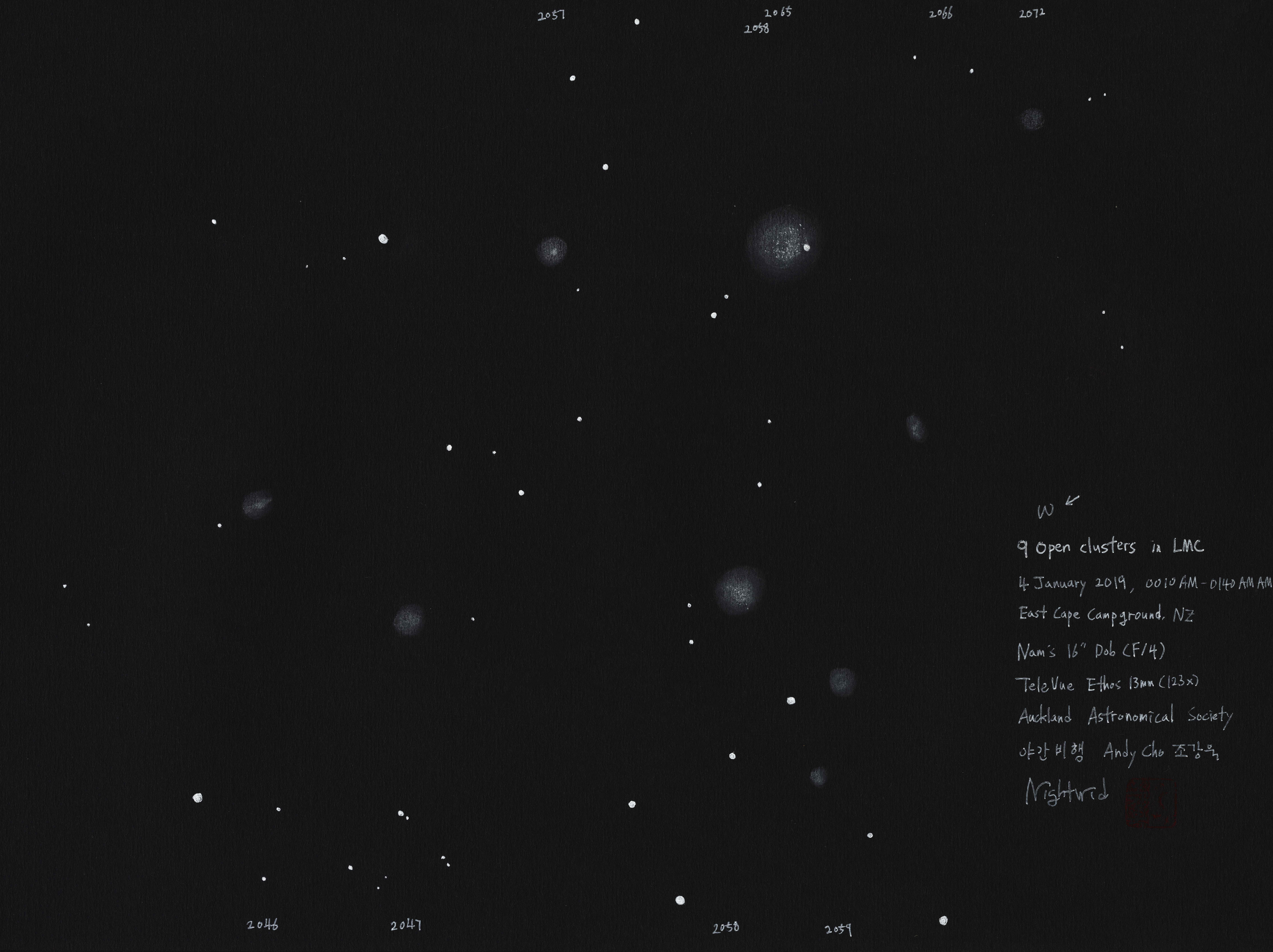 LMC #3 NGC2065 Region | 9 Open Clusters Date: 4 January 2019Author: Nightwid 0 Comments Media : Black Paper, White Gel Pen, Pastel Pencil Share this: Share on Facebook (Opens in new window) Facebook Like Loading... Related