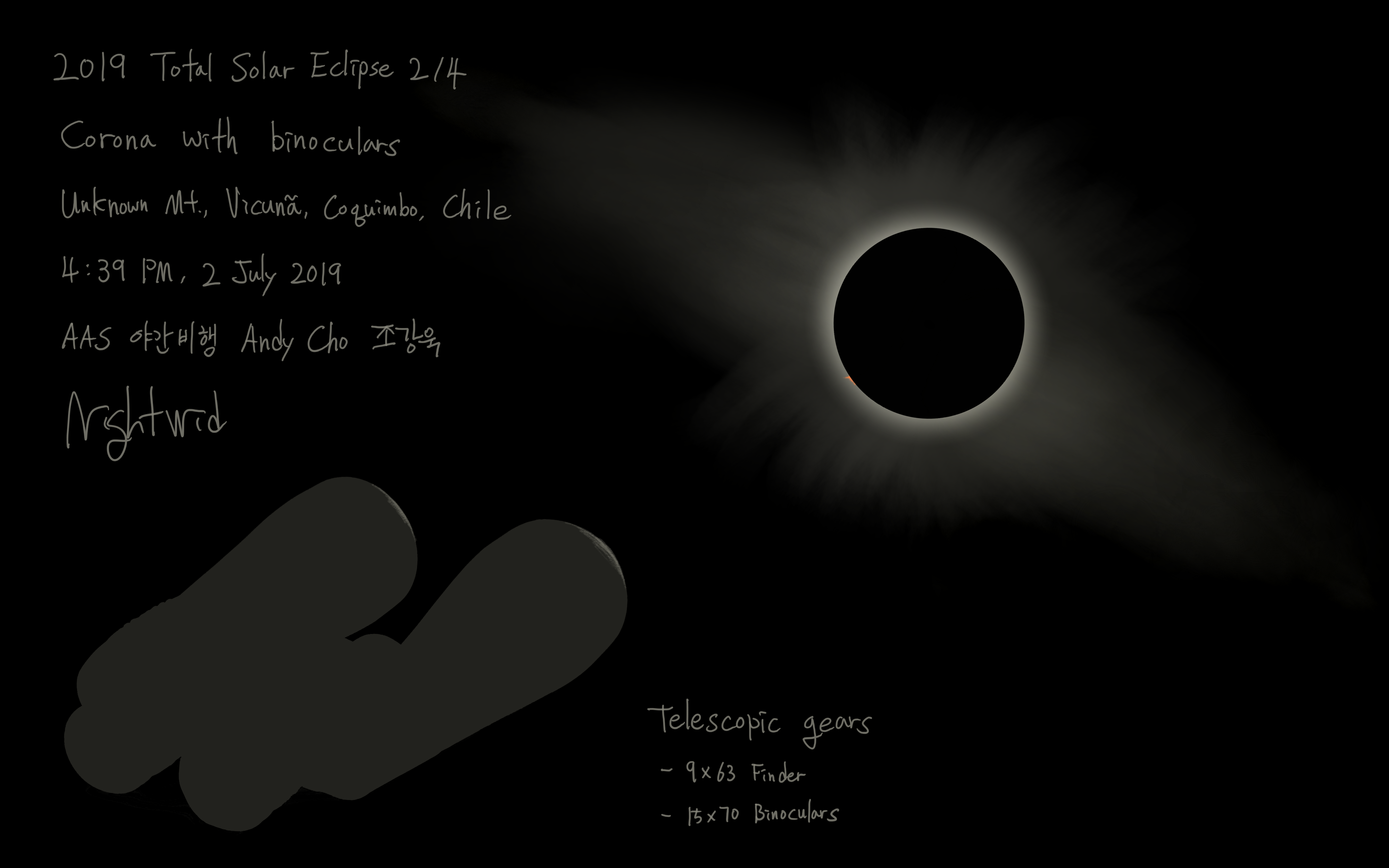 Eclipse 2019 Total Solar Eclipse 2/4 – Corona with binoculars Date: 2 July 2019Author: Nightwid 0 Comments Media : Galaxy Note 8, Stylus Pen Share this: Click to share on Facebook (Opens in new window) Facebook Like Loading... Related