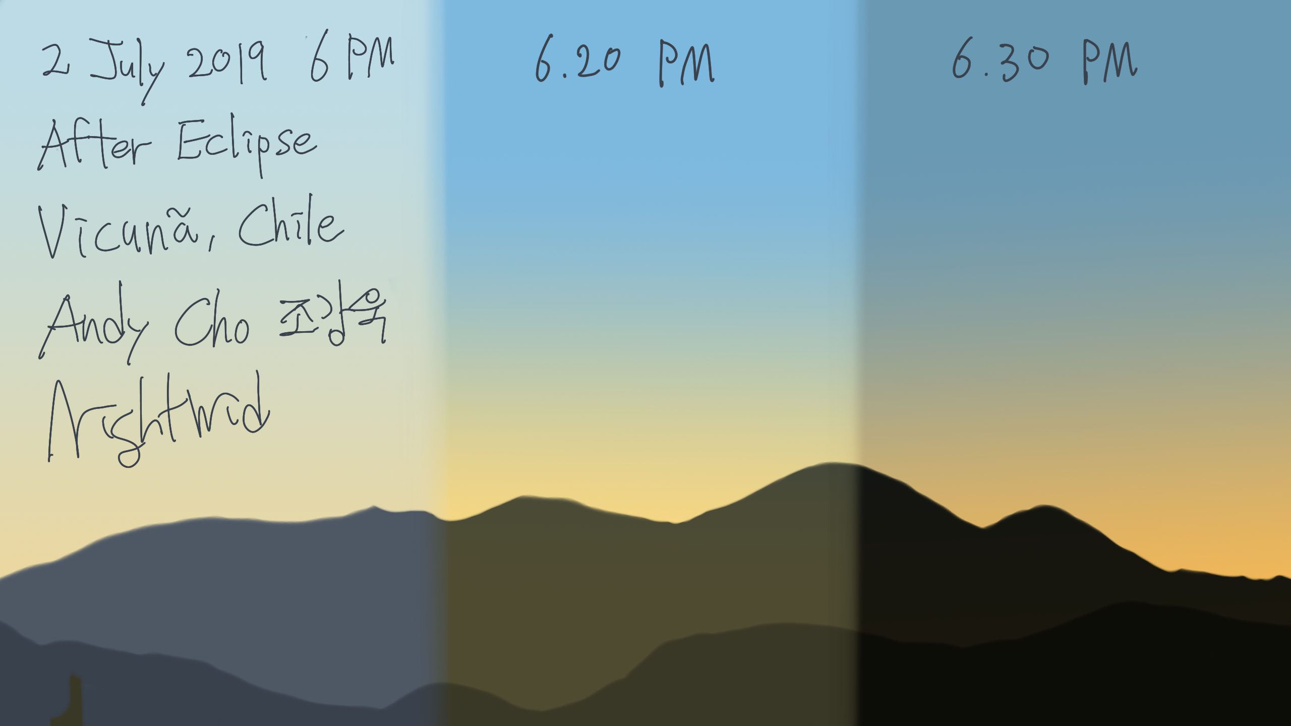 Eclipse, The Sky After Eclipse – Andes, Chile Date: 2 July 2019Author: Nightwid 0 Comments Media : Galaxy Note 8, Stylus Pen Share this: Click to share on Facebook (Opens in new window) Facebook Like Loading... Related