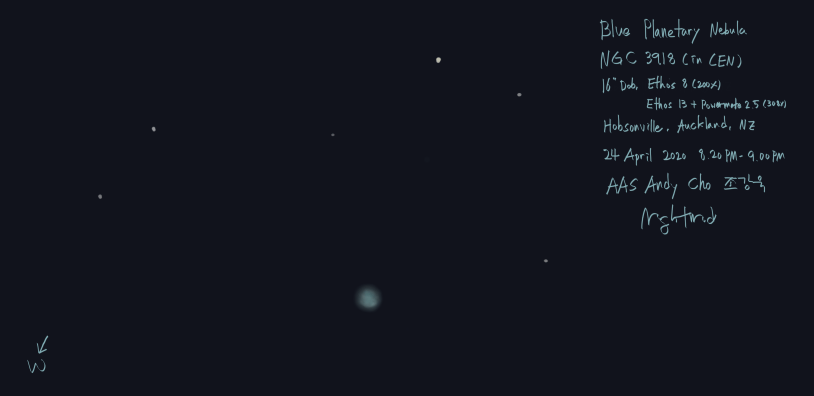 NGC NGC 3918 (Blue Planetary Nebula) Date: 24 April 2020Author: Nightwid 0 Comments Media : Galaxy Note 8, Stylus Pen Share this: Click to share on Facebook (Opens in new window) Facebook Like Loading... Related