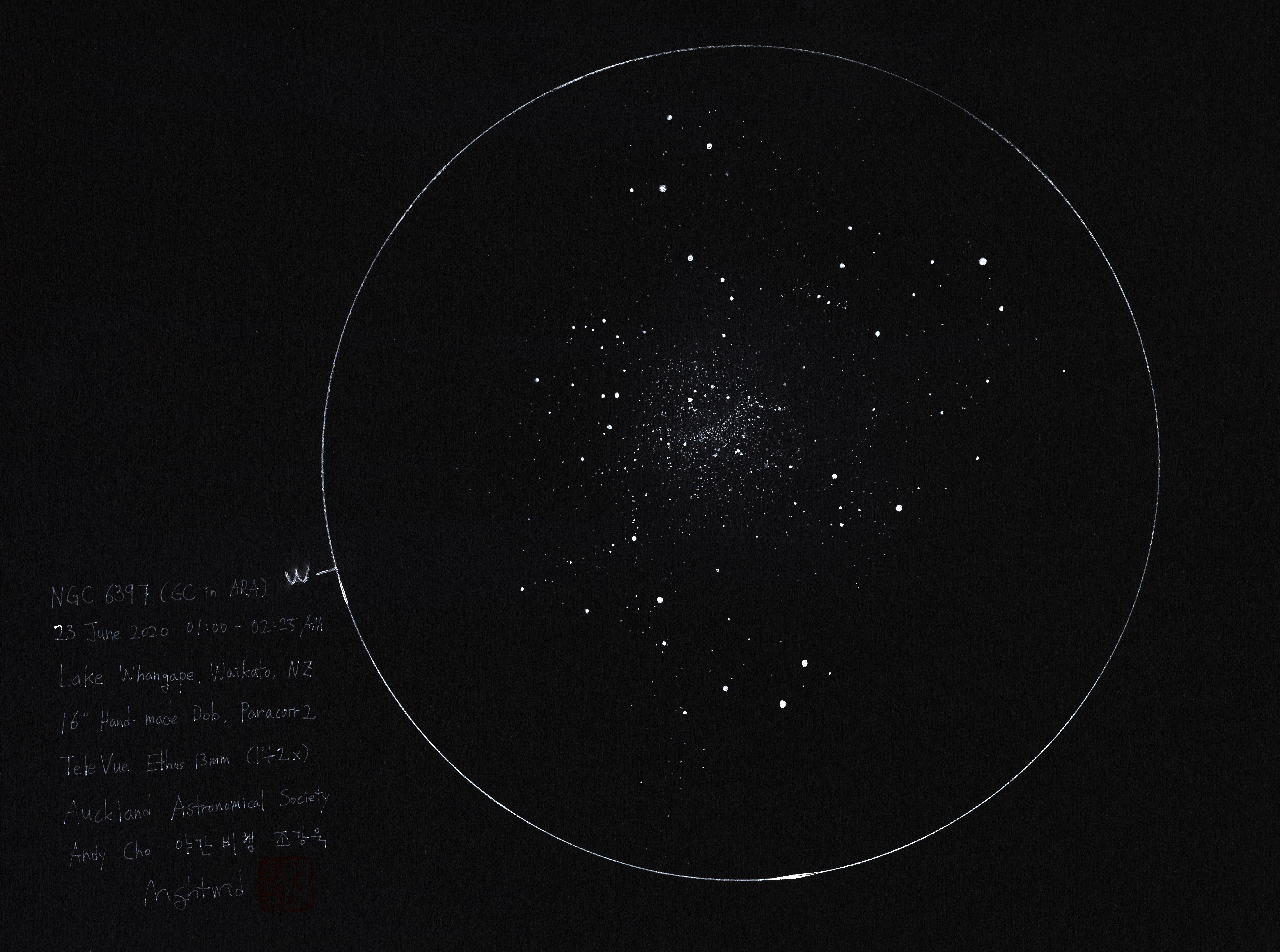 NGC NGC 6397 (GC in Ara) Date: 23 June 2020Author: Nightwid 0 Comments Media : Black Paper, White Gel Pen, Rotring Isograph Share this: Click to share on Facebook (Opens in new window) Facebook Like Loading... Related