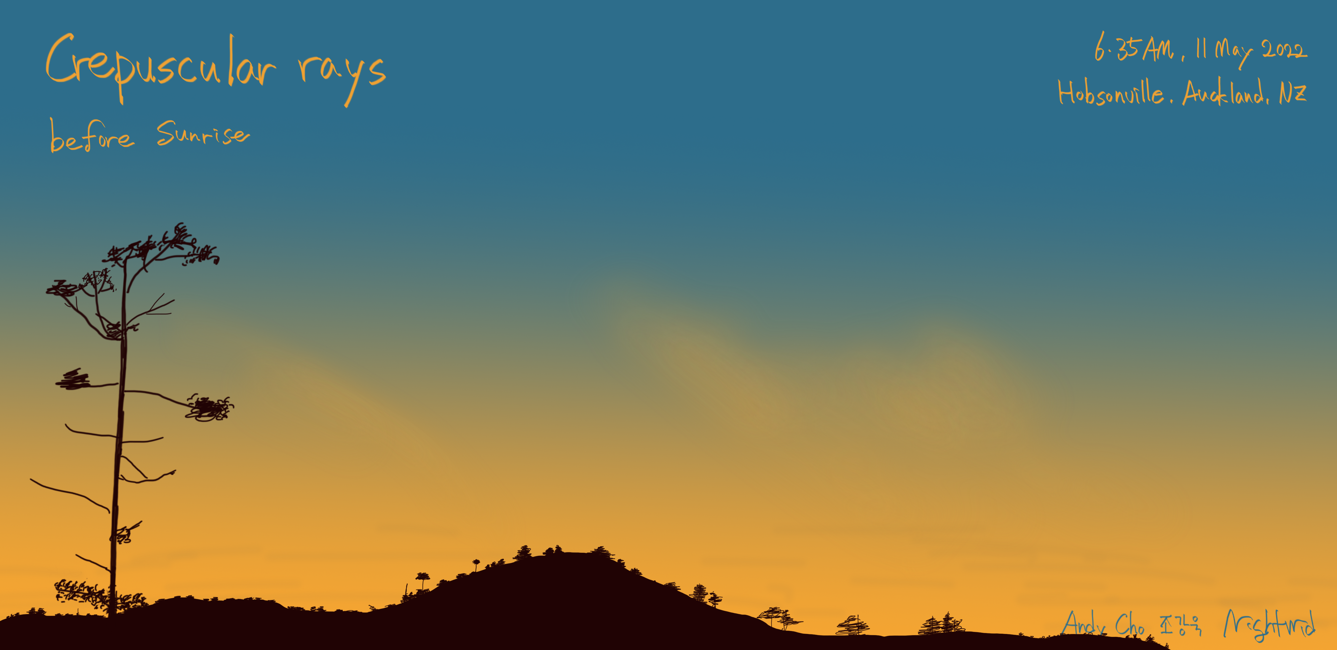 The Sky Crepuscular rays before Sunrise Date: 11 May 2022Author: Nightwid 0 Comments Media : Galaxy Note 8, Stylus Pen Digital drawing of Crepuscular rays in the early morning.The rays had moved continually before Sunrise. Share this: Click to share on Facebook (Opens in new window) Facebook Like Loading... Related