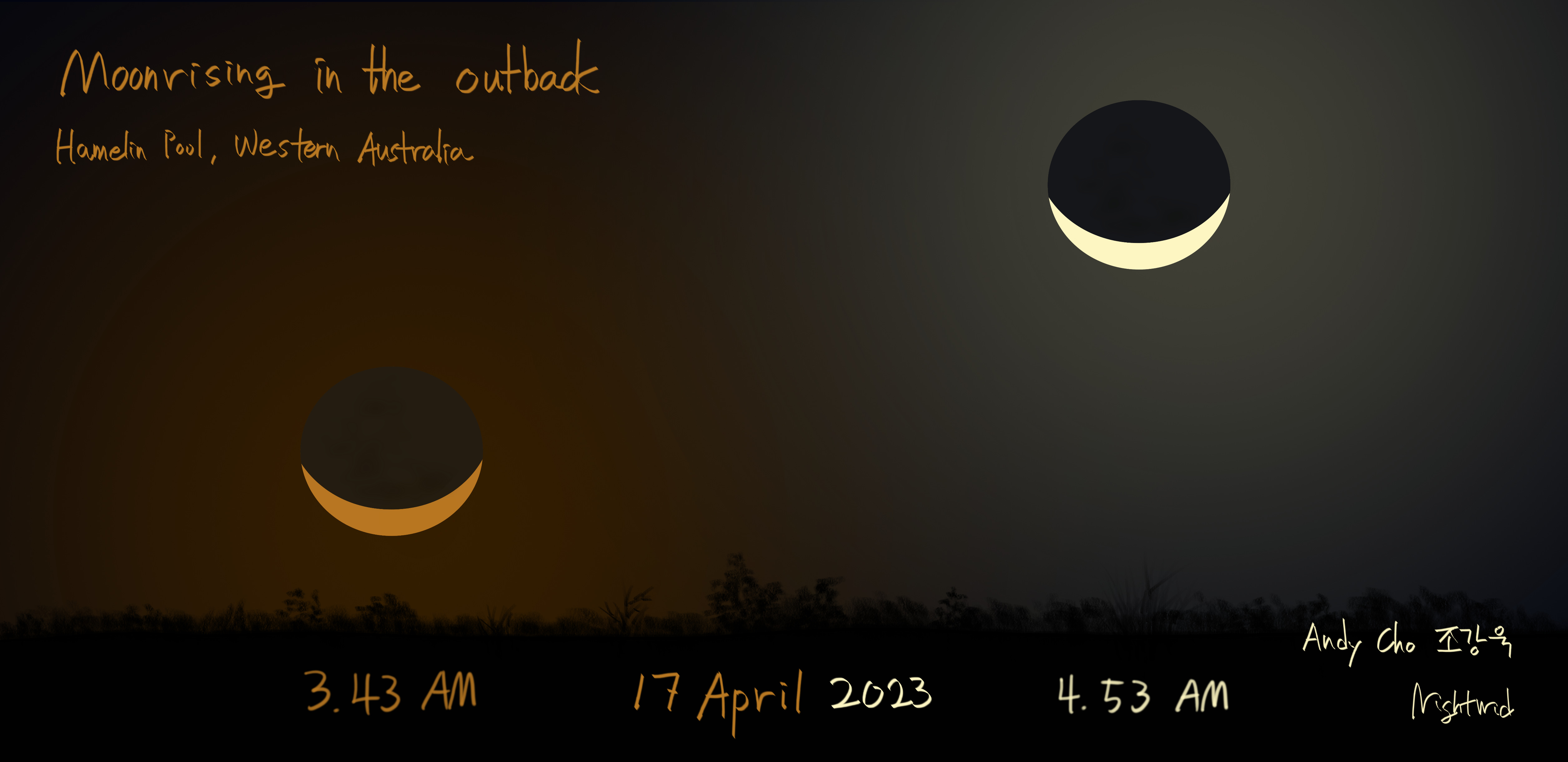 Moon Scenery, The Sky Moonrising in the outback Date: 17 April 2023Author: Nightwid 0 Comments Media: Samsung Galaxy Tab S7+ Moonrise in the silent Hamelin Pool Share this: Click to share on Facebook (Opens in new window) Facebook Like Loading... Related
