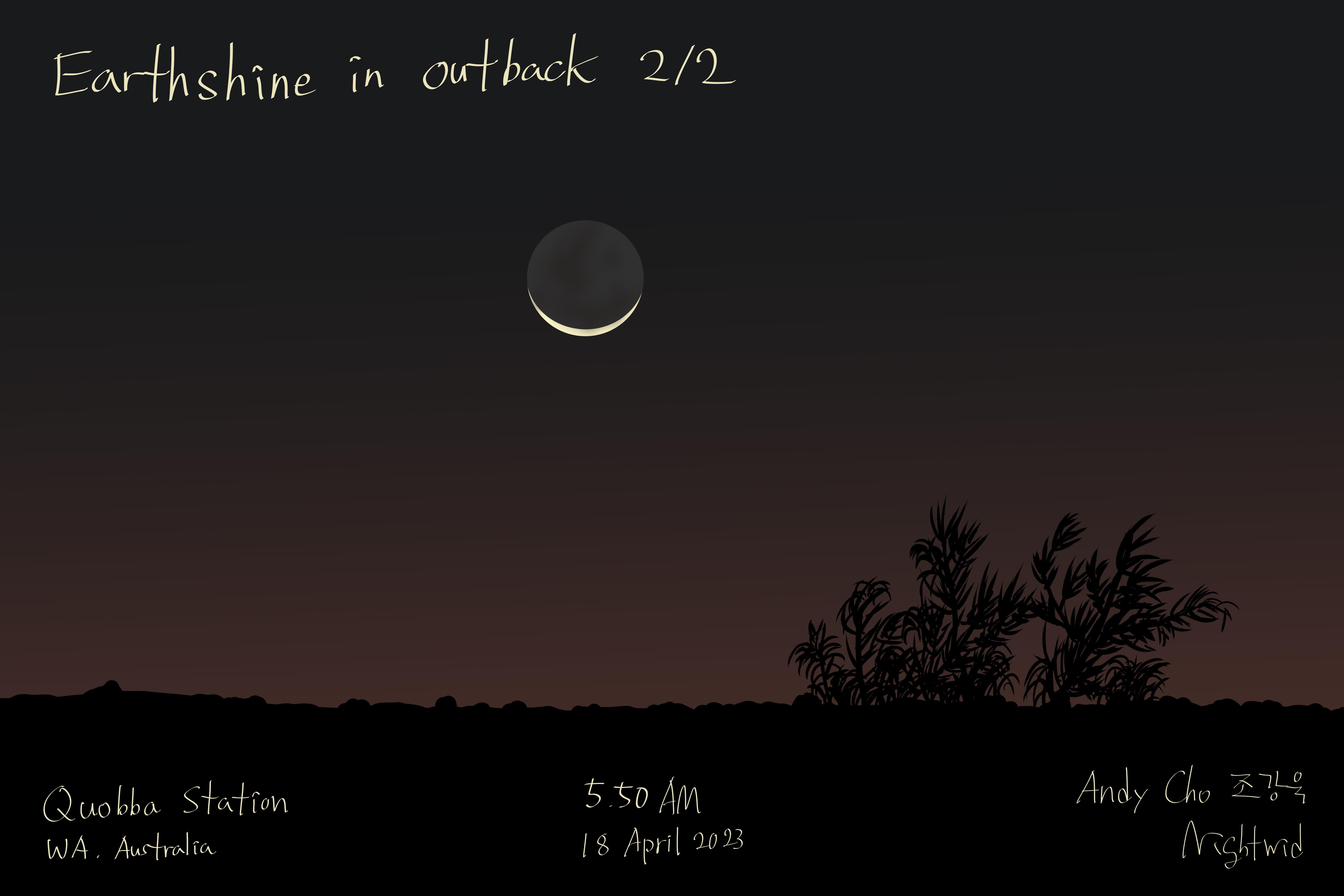Moon Scenery, The Sky Earthshine in outback – Two moments Date: 18 April 2023Author: Nightwid 0 Comments Media: Samsung Galaxy Tab S7+ Have you seen Earthshine rise? Recommend it haha Share this: Click to share on Facebook (Opens in new window) Facebook Like Loading... Related