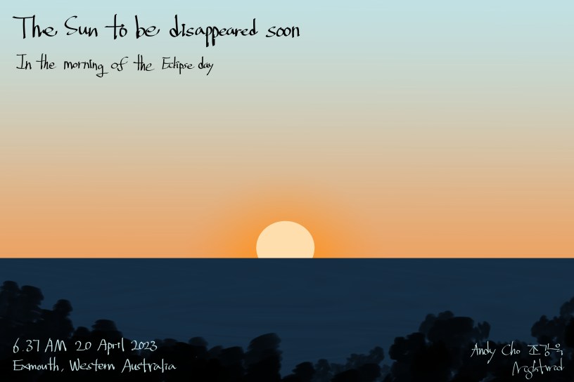 The Sky The Sun to be disappeared soon (In the morning of the Eclipse day) Date: 20 April 2023Author: Nightwid 0 Comments Media: Samsung Galaxy Tab S7+ Share this: Click to share on Facebook (Opens in new window) Facebook Like Loading... Related