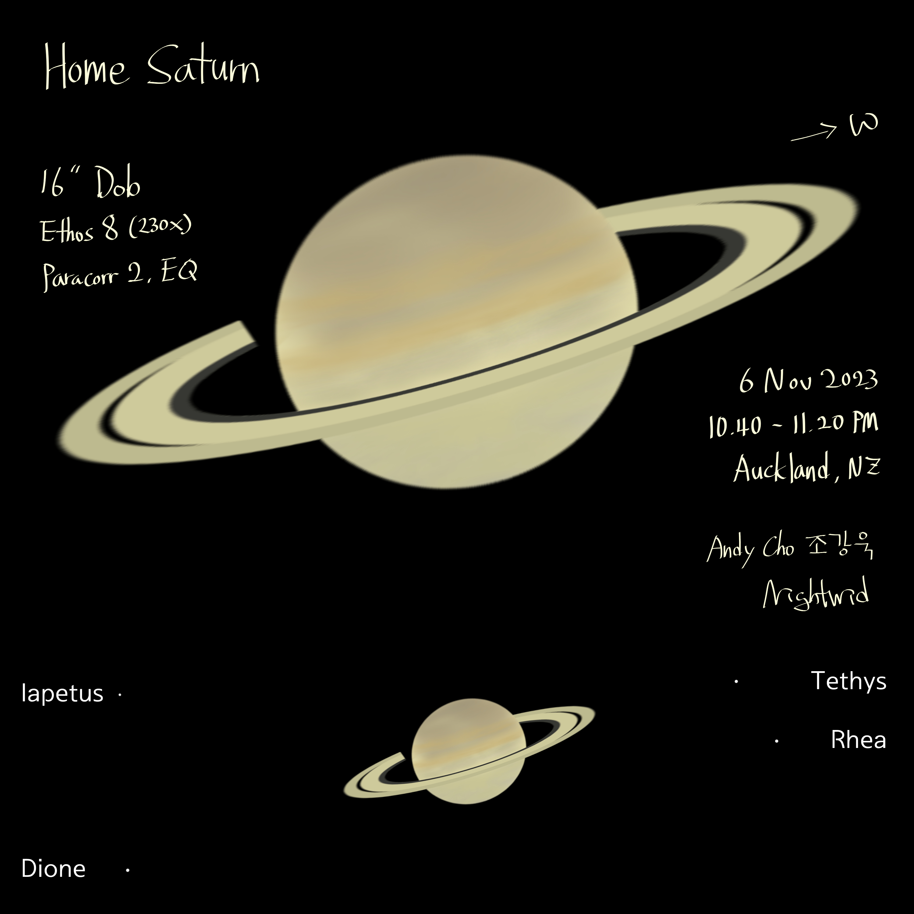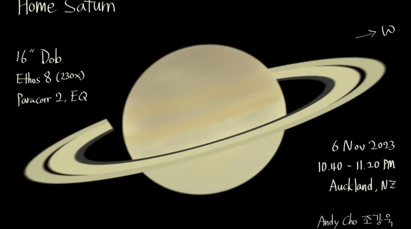 Saturn Home Sweet Saturn Date: 6 November 2023Author: Nightwid 0 Comments Equipment: 16″ Custom-made Dob It was a moderate seeing, but I tried to see details of the Saturn at home. Share this: Click to share on Facebook (Opens in new window) Facebook Like Loading... Related