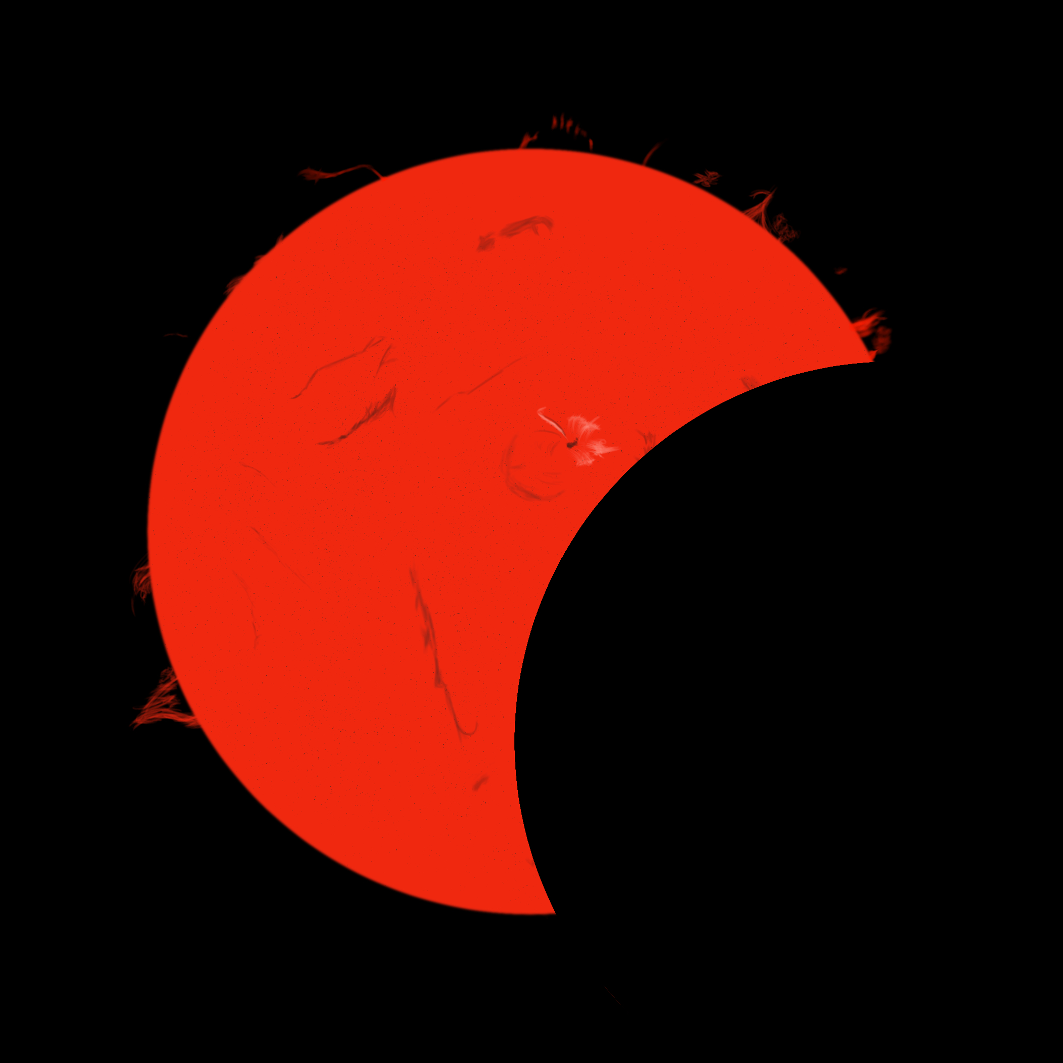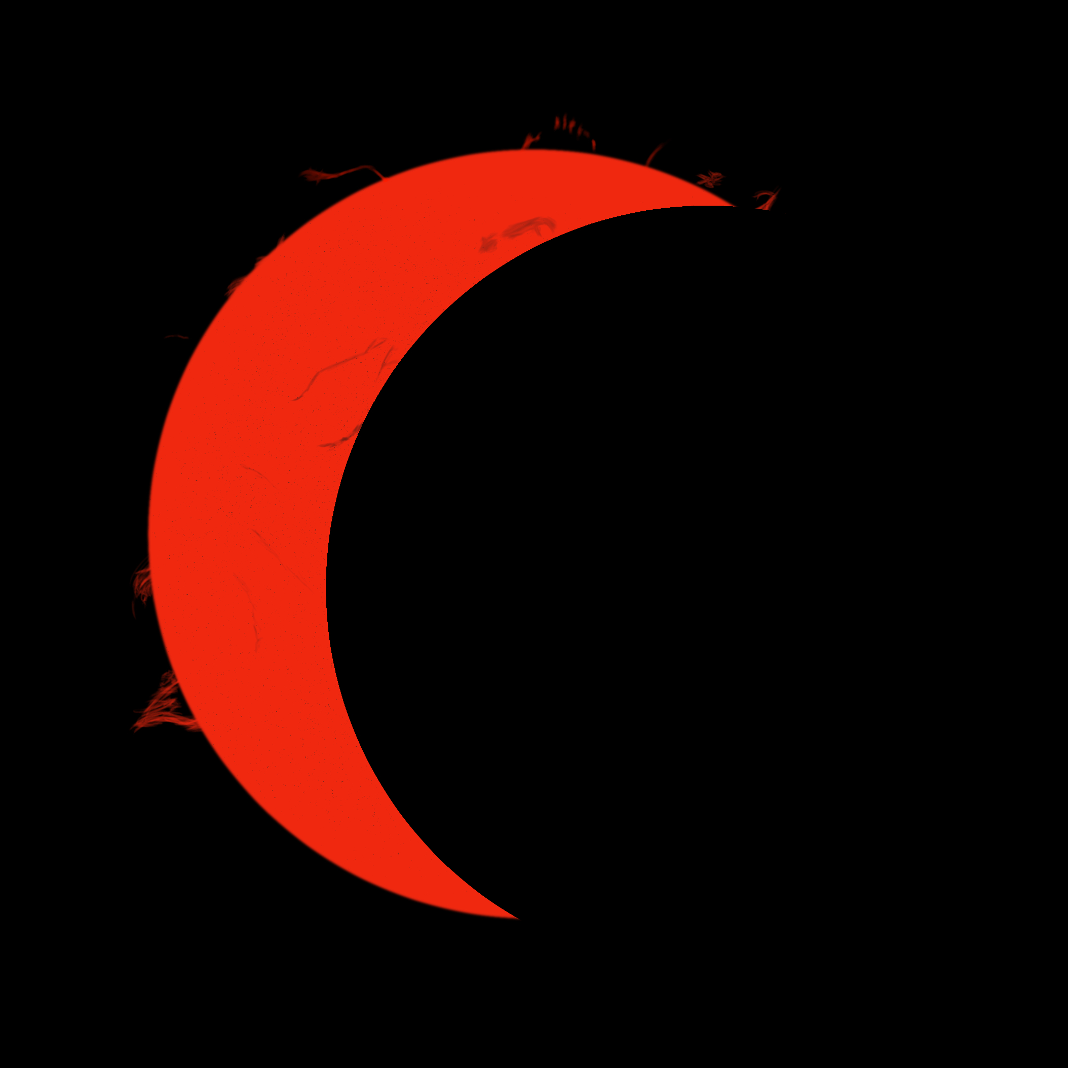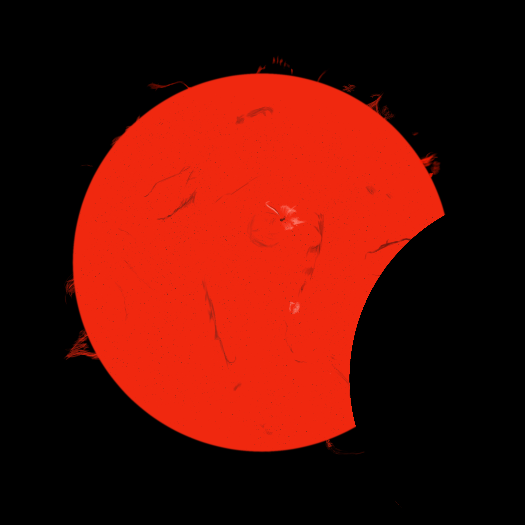 Eclipse 2024 Total Solar Eclipse – Solar Scope drawing Date: 8 April 2024Author: Nightwid 0 Comments Media: Lunt 60 Double Stack, Galaxy Tab S7+, Clip Studio Solar Scope drawing during the totality.The size of the prominences is the same as before the totality. The images below show the progress of the eclipse by solar scope. Share this: Click to share on Facebook (Opens in new window) Facebook Like Loading... Related
